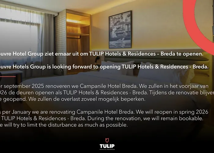 Dit 4-sterren Van Der Valk Hotel Breda, een statig hotel met 110 kamers, is ideaal gelegen aan de rand van Breda, direct aan de A16. De locatie biedt gemakkelijke toegang tot Rotterdam, Antwerpen en Zeeland. Met de mogelijkheid om in elke kamer een overheerlijke lunch te nuttigen en een persoonlijk buffet naar keuze samen te stellen, zorgt het hotel voor een uitmuntende culinaire ervaring. Voor ontspanning na een drukke dag kunnen de gasten relaxen in het aparte zitgedeelte. Met zijn gunstige ligging, comfortabele accommodatie en reeks aan voorzieningen, vormt dit het perfecte startpunt voor de verkenning van de omgeving.
